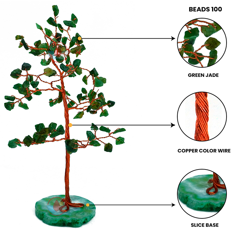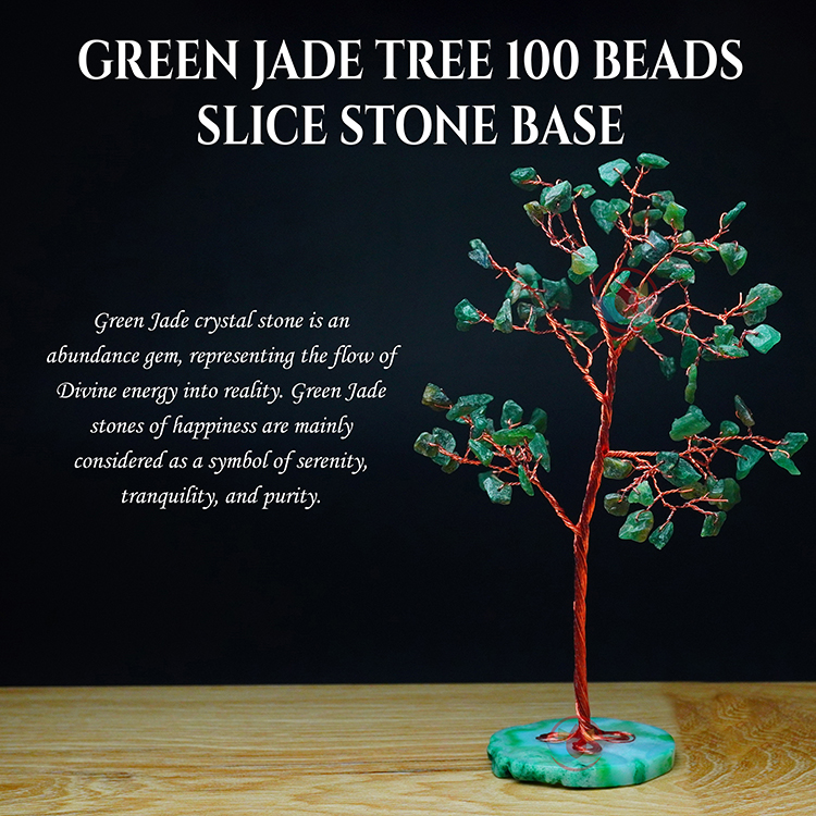 Green Jade Tree 100 Beads Slice Stone Base