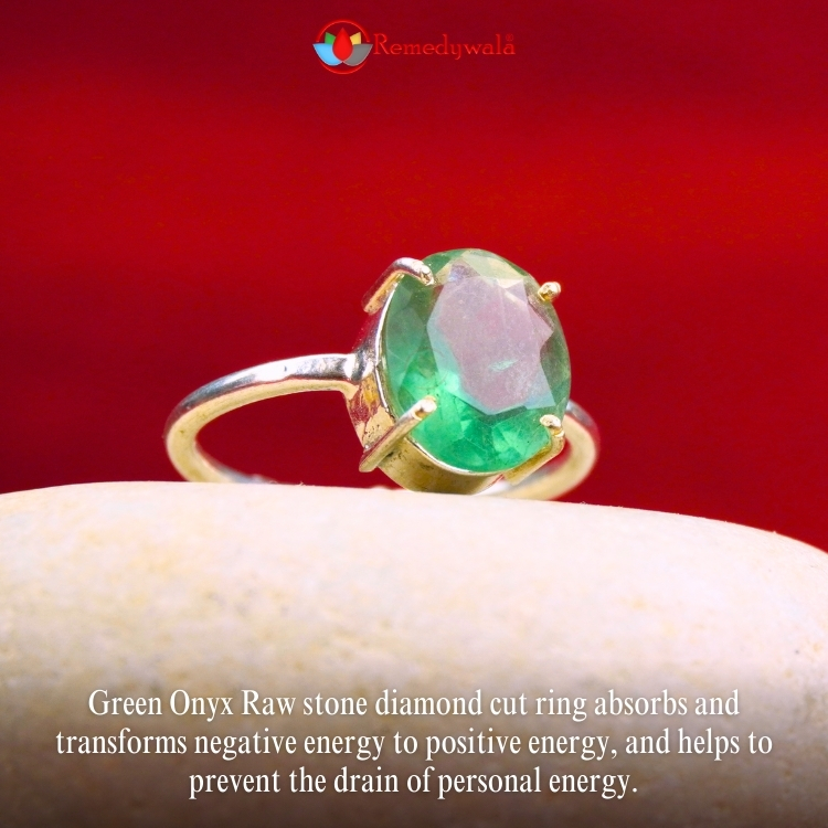 • Green Onyx Raw stone diamond cut ring absorbs and transforms negative energy to positive energy, and helps to prevent the drain of personal energy.