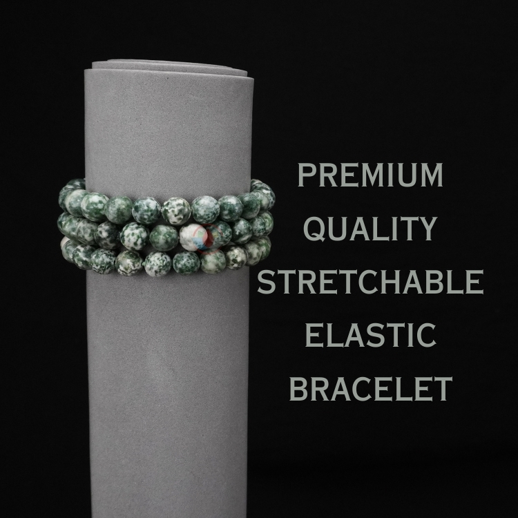 - Material : Natural Healing Green spot jasper Stones | SPECIFICATION : Stretchable Elastic Green spot jasper Bracelet With Certificate | Stone Size : 8 mm | Shape : Round Stone | Diameter : 2.5 Inch. | Piece : 1