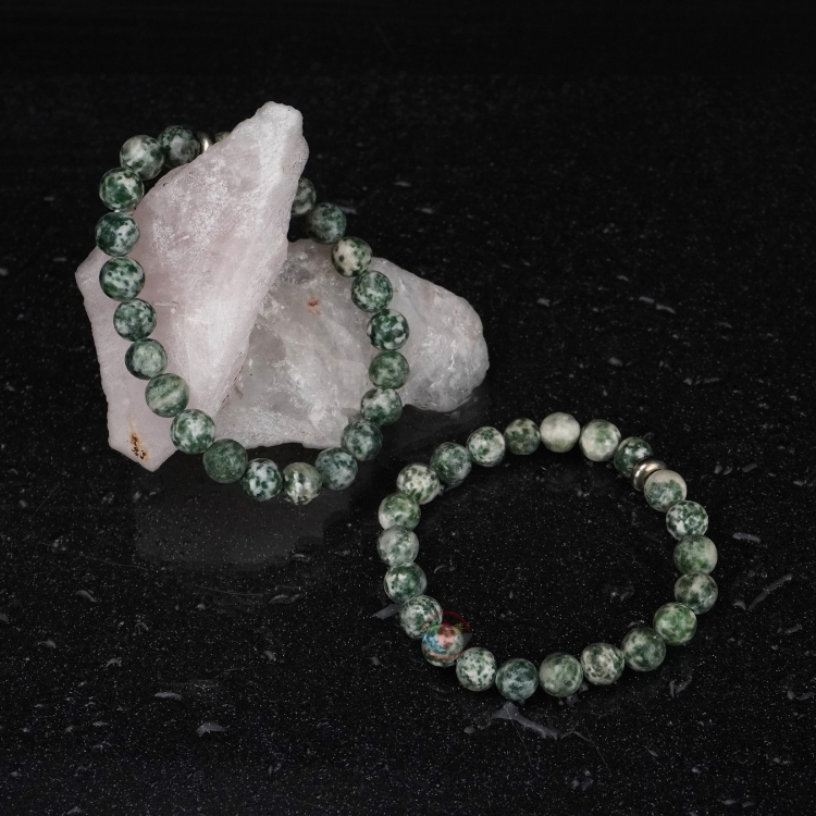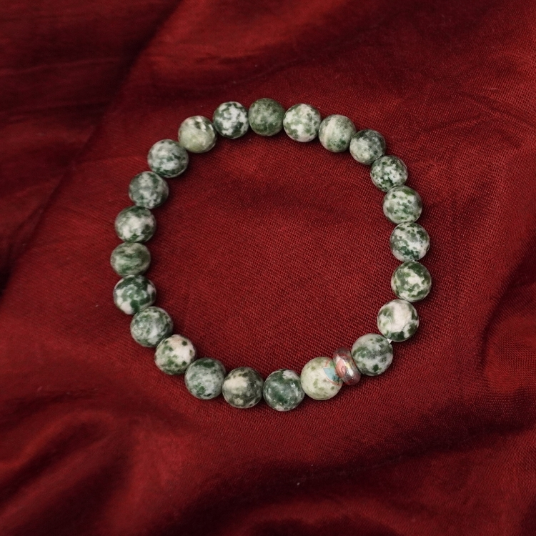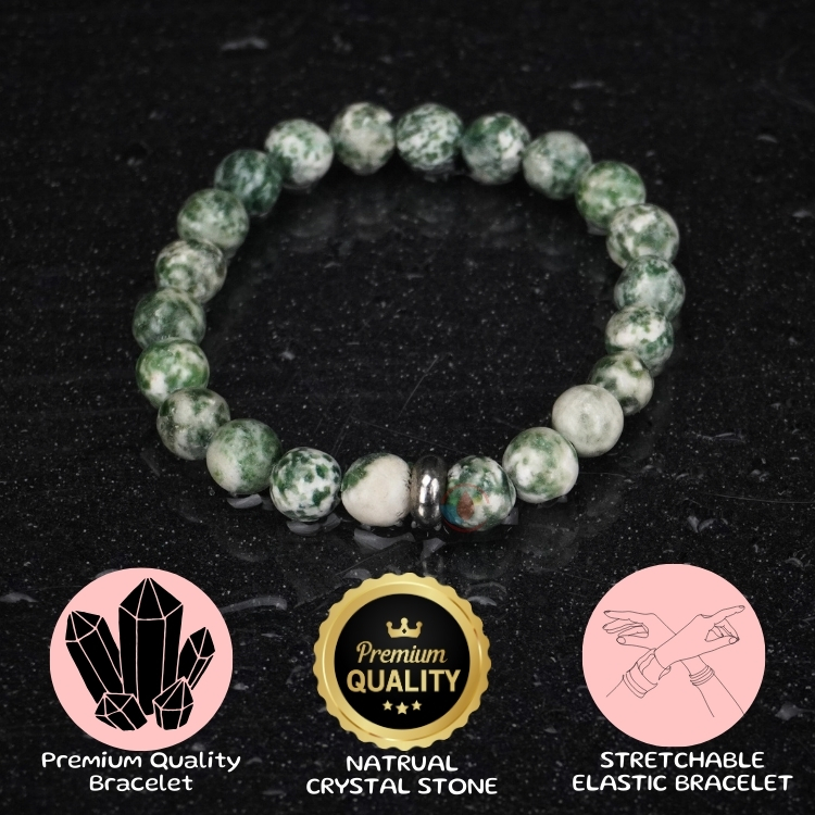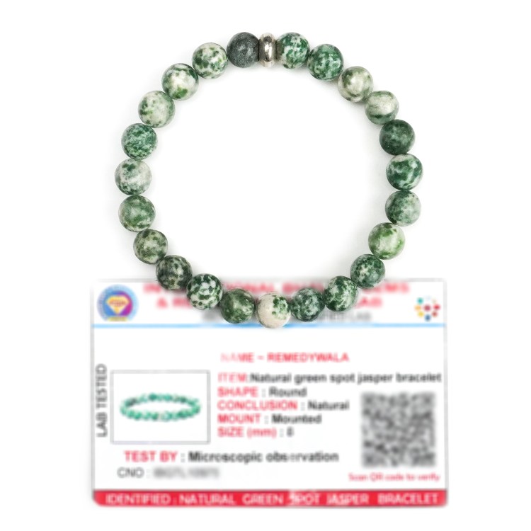 - Green spot jasper Bracelet with Certificate For Reiki, Balance Chakra, Positive Energy, and Healing. Green spot jasper Stone Bracelet 8mm. 8mm Gemstones Round Beads Stretchable Bracelet for Men and Women.