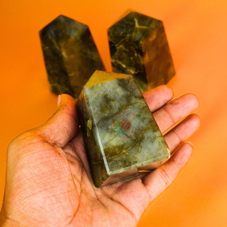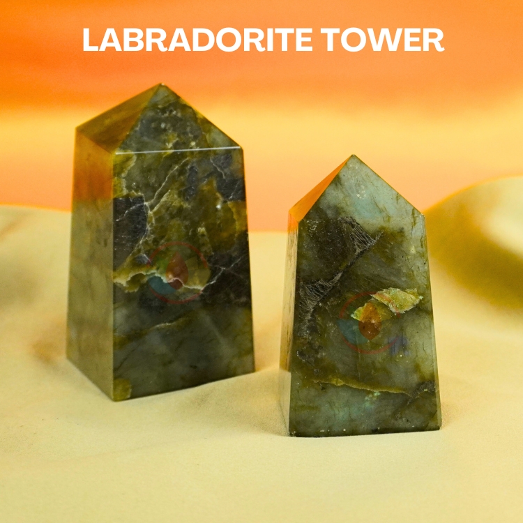 • Material: Natural Labradorite Stone Tower | Weight: 300-450 Gms | Dimensions: 5Cm * 5CM * 8 to 10 CM Approx.