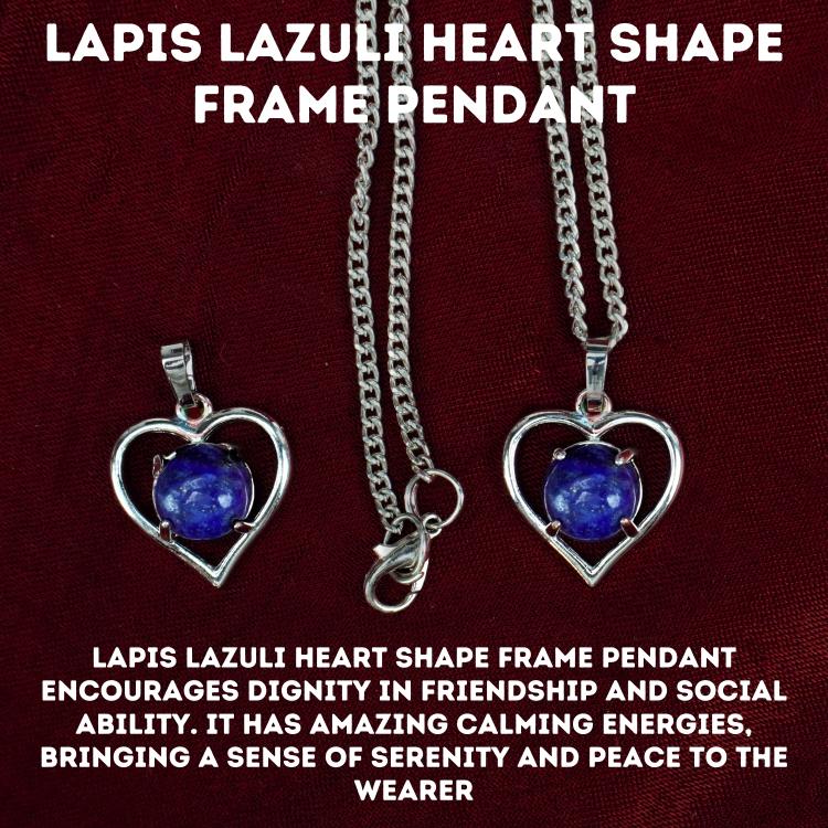 - Lapis Lazuli Heart Shape Frame Pendant encourages dignity in friendship and social ability. It has amazing calming energies, bringing a sense of serenity and peace to the wearer.