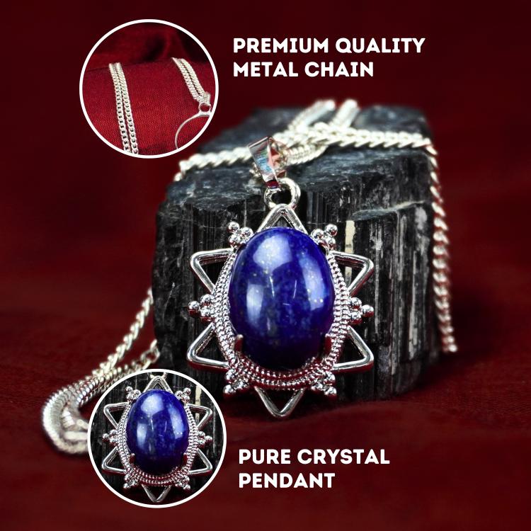 • Lapis Lazuli Star Frame Pendant with Metal Chain. Reiki Healing and Crystal Healing Star Frame Lapis Lazuli Pendant for Women and Men