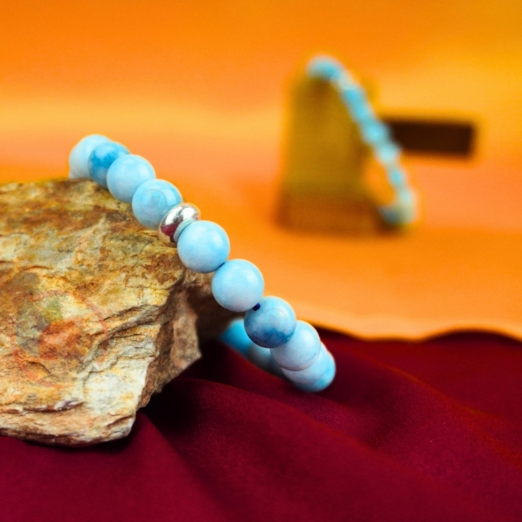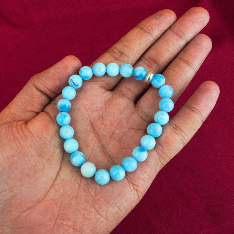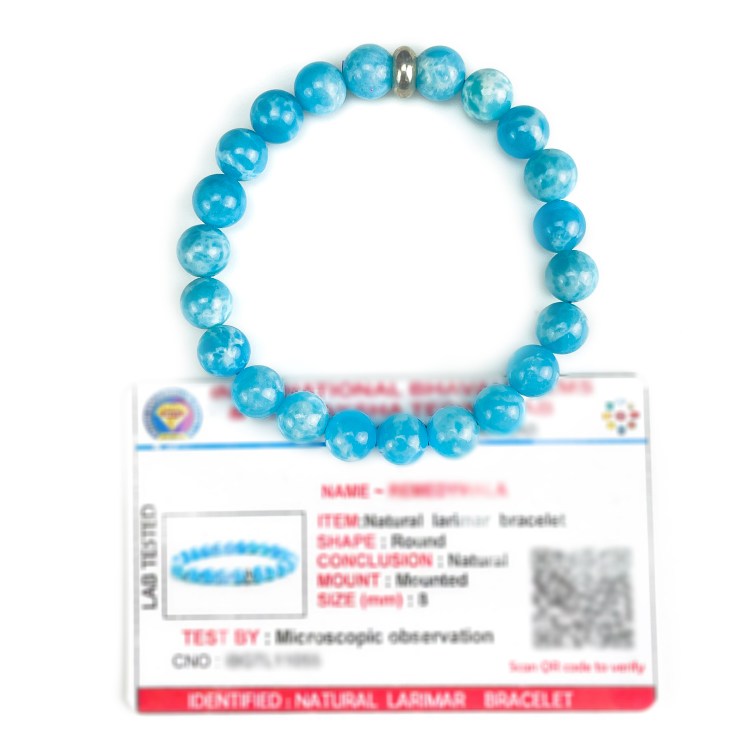 - Material : Natural Healing Larimar Stones | SPECIFICATION : Stretchable Elastic Larimar Bracelet With Certificate | Stone Size : 8 mm | Shape : Round Stone | Diameter : 2.5 Inch. | Piece : 1