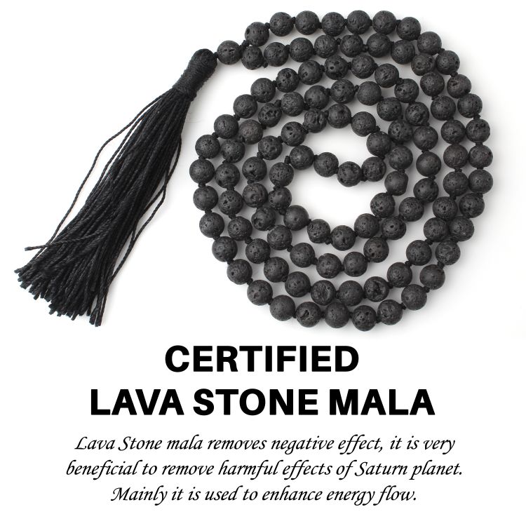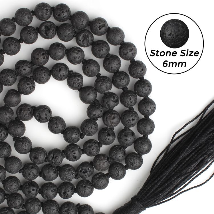These beads are from the lava which is produced when a volcano erupts. Lava Mala is regard as a symbol of strength, endurance and strength.