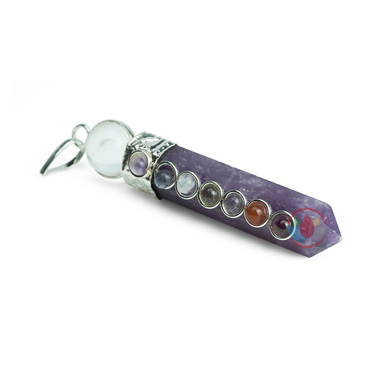 - Lepidolite 7 Chakra Pencil Pendant with Metal Chain. Reiki Healing and Crystal Healing Raw Stone Lepidolite Pendant for Women and Men