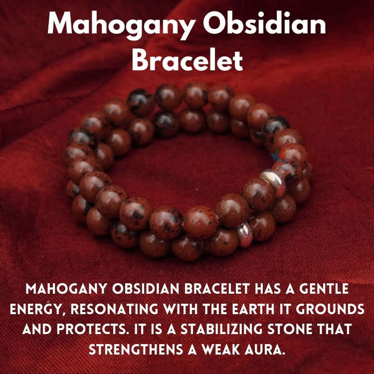 - Mahogany Obsidian has a gentle energy, resonating with the earth it grounds and protects. It is a stabilizing stone that strengthens a weak aura.