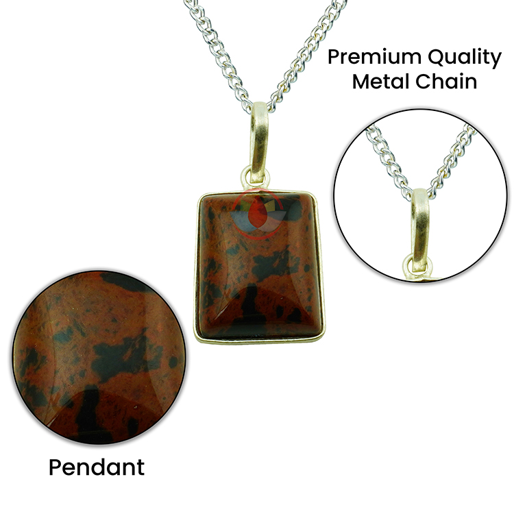 - Mahogany Obsidian Pendant with Metal Chain. Reiki Healing and Crystal Healing Mahogany Obsidian Stone Pendant for Women and Men