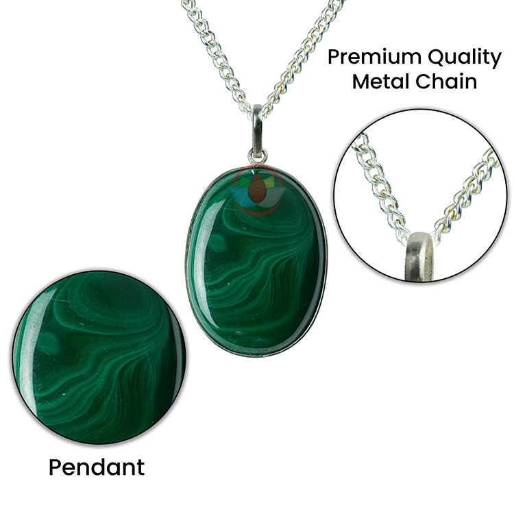- Malachite Pendant with Metal Chain. Reiki Healing and Crystal Healing Malachite Stone Pendant for Women and Men