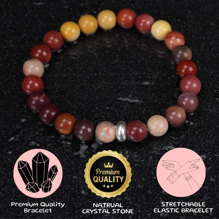 - Material : Natural Healing Mookaite Stones | SPECIFICATION : Stretchable Elastic Mookaite Bracelet With Certificate | Stone Size : 8 mm | Shape : Round Stone | Diameter : 2.5 Inch. | Piece :1