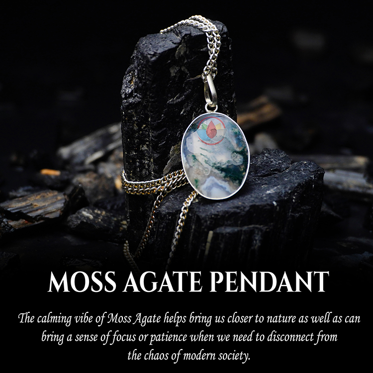- Moss Agate Pendant with Metal Chain. Reiki Healing and Crystal Healing Moss Agate Stone Pendant for Women and Men