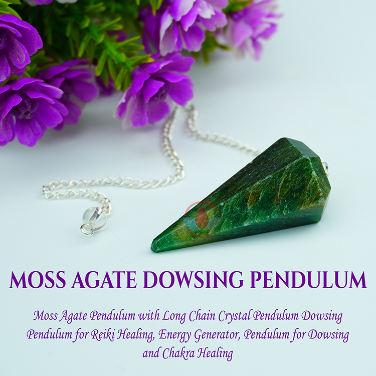- Moss agate pendulums are believed to have grounding and stabilizing energy, which may help to promote balance and clarity of thought. Some people also believe that moss agate can enhance prosperity and abundance.