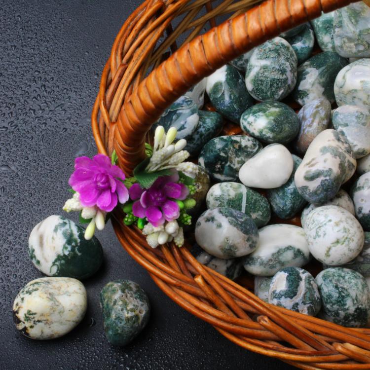 - Moss Agate Tumbled Stone helps to improve personal and spiritual growth through quiet introspection.