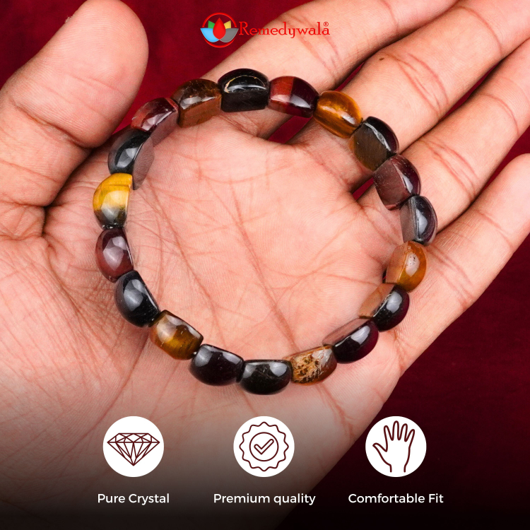 - Multicolor Tiger Eye Tumble Bracelet would rouse hidden talents inside you. By all means, if you feel uncomfortable at work or feel some kind of inefficiency, it is a good gemstone to use. Tiger Eye will significantly support your work in the field that suits you.