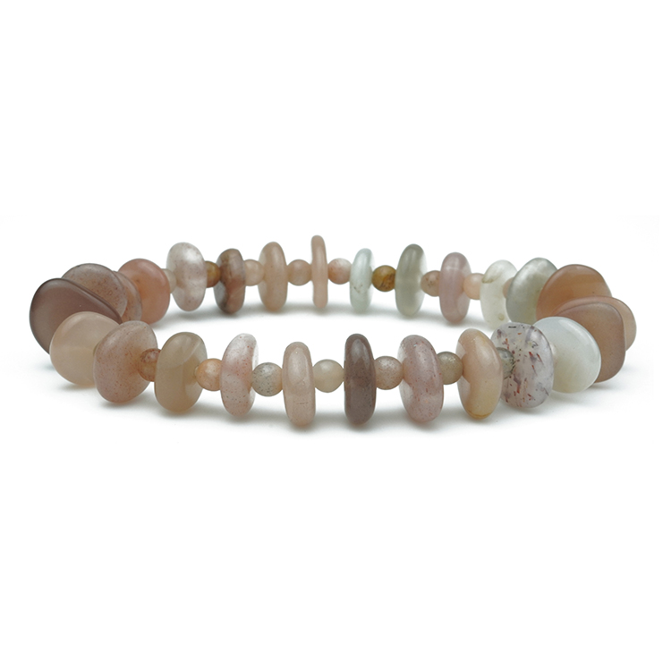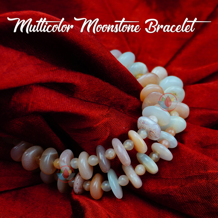 - Material: Natural Healing Multicolor Moonstone Stones | SPECIFICATION: Stretchable Elastic Multicolor Moonstone Bracelet | Stone Size: 4 mm | | Diameter: 2.5 Inch | Piece :1