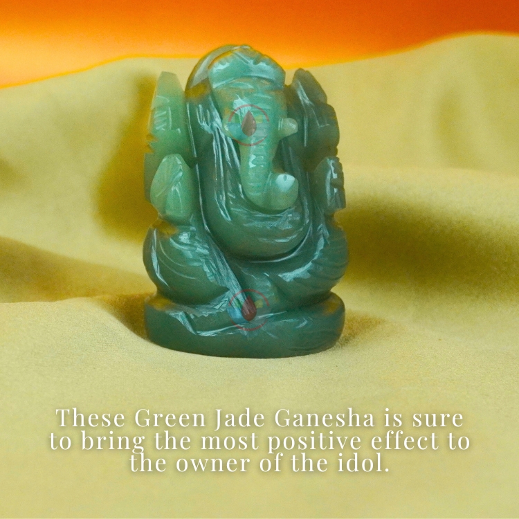 - The Green Jade Ganesha Statue helps to bring peace and positive energy, which, coupled with Lord Ganesha’s supreme powers, makes the Green Jade Ganesha a product which can be kept in the alter or used as a decorative piece or gift item. These green jade Ganesha are sure to have the most positive effect on the owner of the idol.