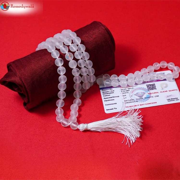 - Charged and Energized Natural Clear Quartz Mala | Stone Size -8 mm | Piece :1 | Shape : Round