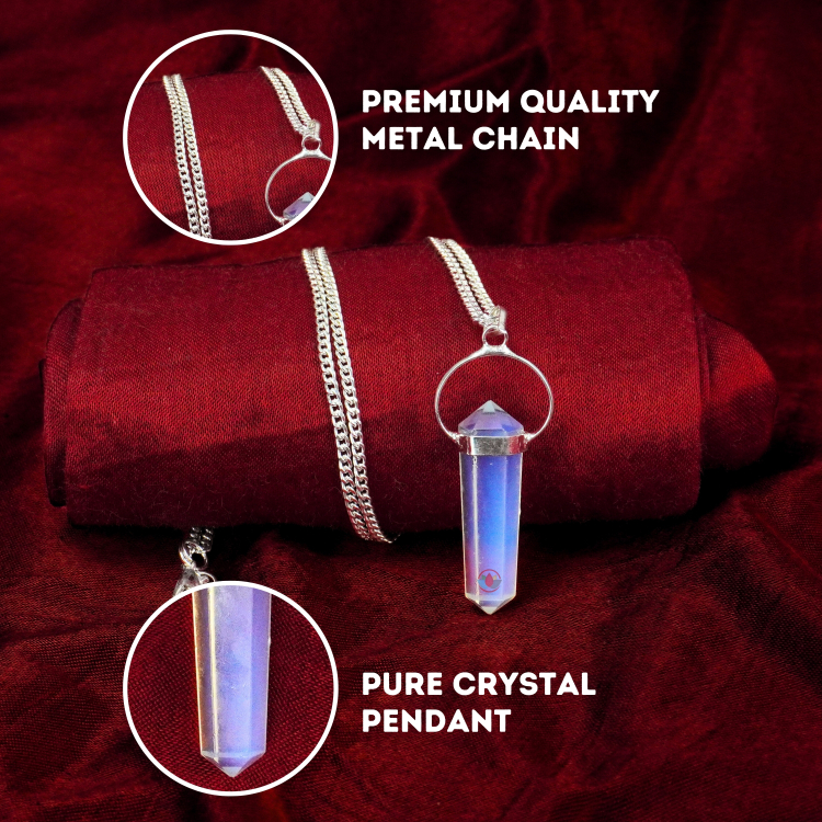 - Opalite Pendant Double Terminated with Metal Chain. Reiki Healing and Crystal Healing Raw Stone Opalite Pendant for Women and Men