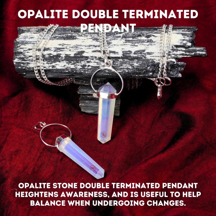 - Opalite Stone Double Terminated Pendant heightens awareness, and is useful to help balance when undergoing changes.