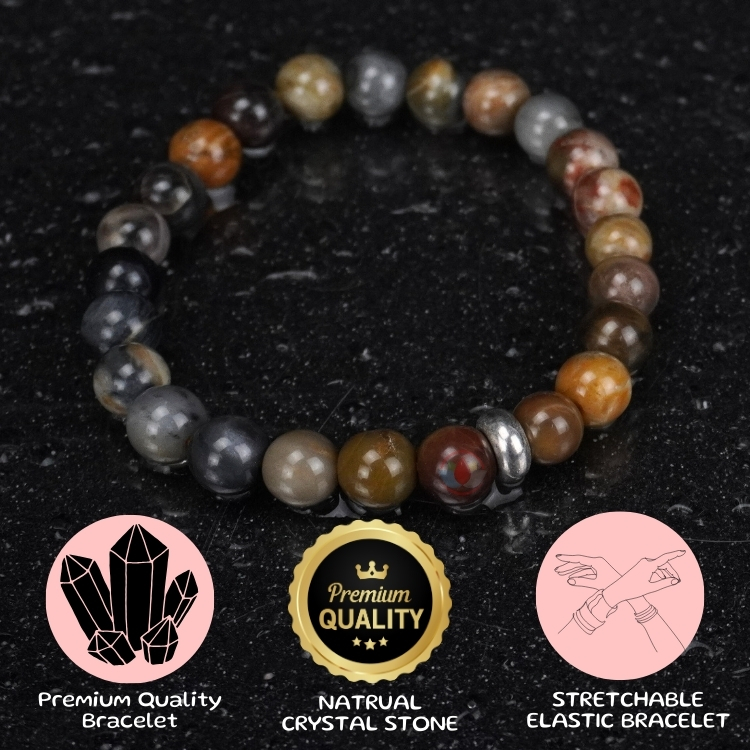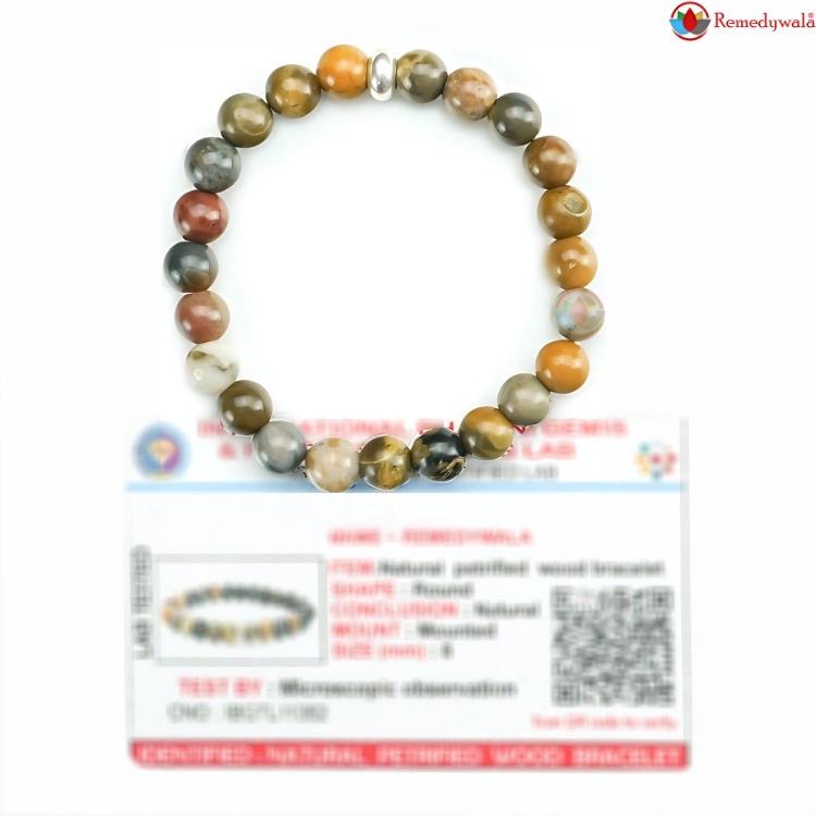 - Material : Natural Healing Petrified Wood Stones | SPECIFICATION : Stretchable Elastic Petrified Wood Bracelet With Certificate | Stone Size : 8 mm | Shape : Round Stone | Diameter : 2.5 Inch. | Piece :