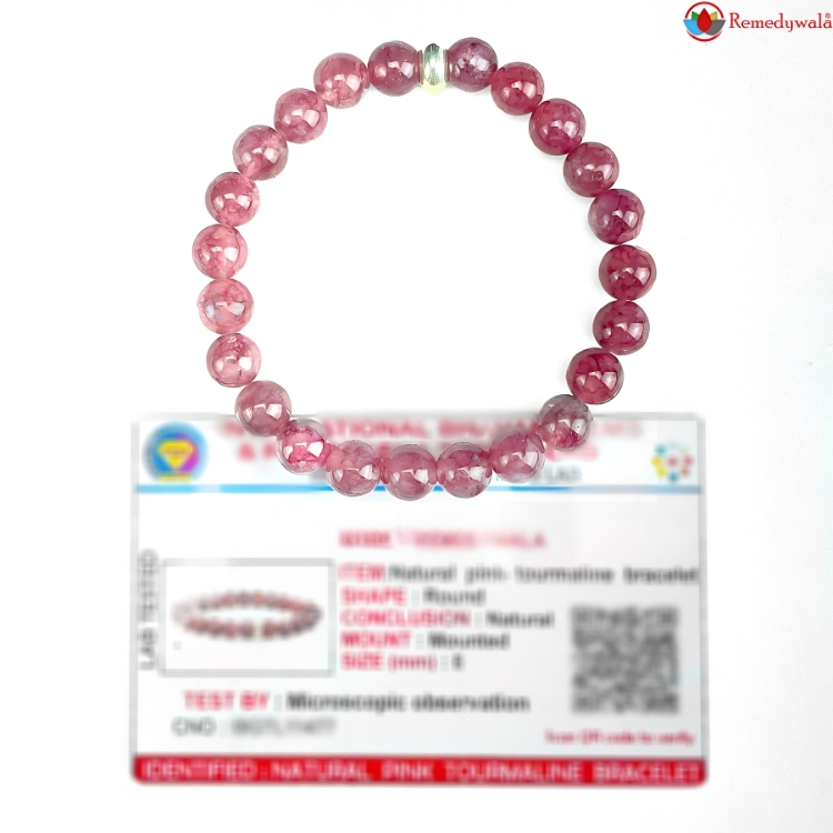 - Material : Natural Healing Pink Tourmaline Stones | SPECIFICATION : Stretchable Elastic Pink Tourmaline Bracelet With Certificate | Stone Size : 8 mm | Shape : Round Stone | Diameter : 2.5 Inch. | Piece : 1