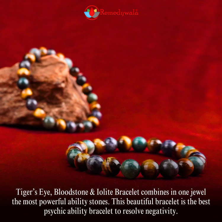 Metaphysical properties:-- Psychic Abilities psychic abilities: Tiger’s Eye, Bloodstone & Iolite Bracelet combines in one jewel the most powerful ability stones.