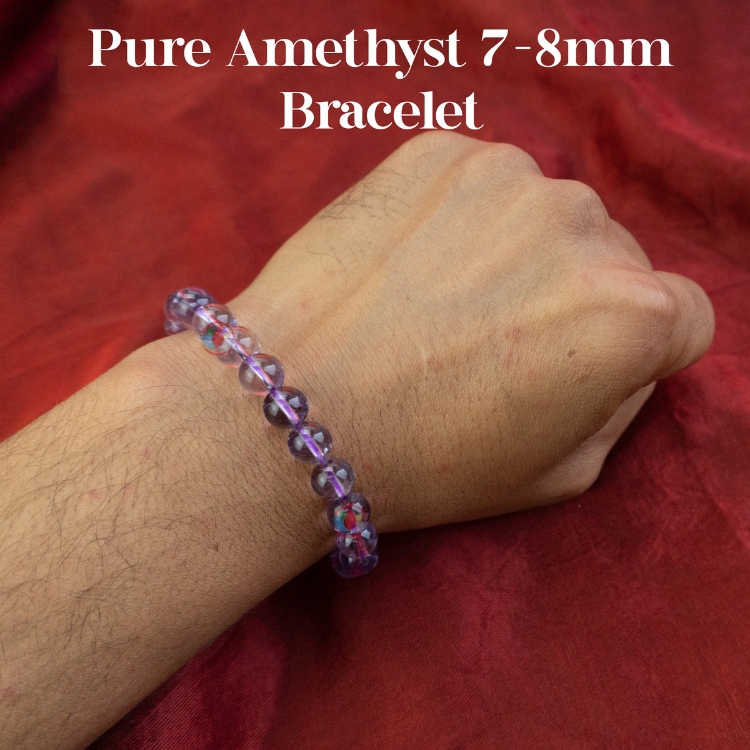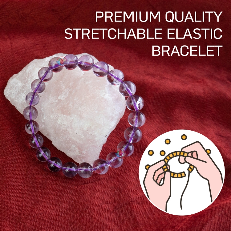 • Material: Natural Healing Amethyst Stones | SPECIFICATION : Stretchable Elastic Amethyst Bracelet | Stone Size : 7-8 mm | Shape : Natural Stone | Diameter : 2.5 Inch. | Piece : 1
