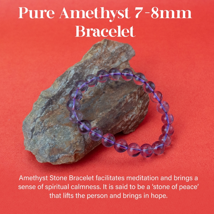 • Amethyst Stone Bracelet facilitates meditation and brings a sense of spiritual calmness. It is said to be a ‘stone of peace’ that lifts the person and brings in hope.