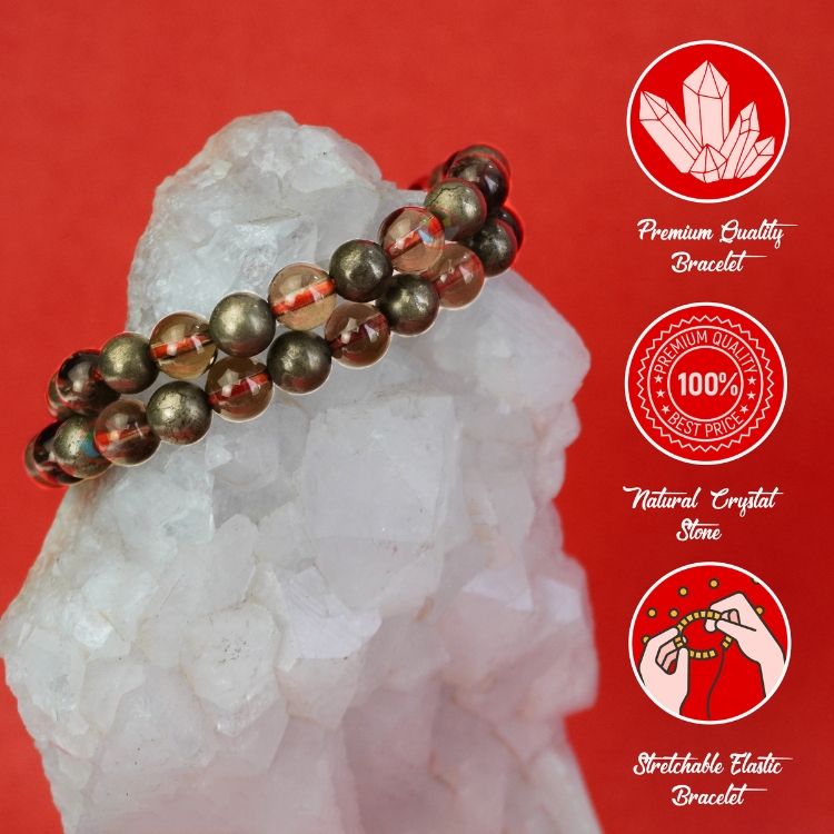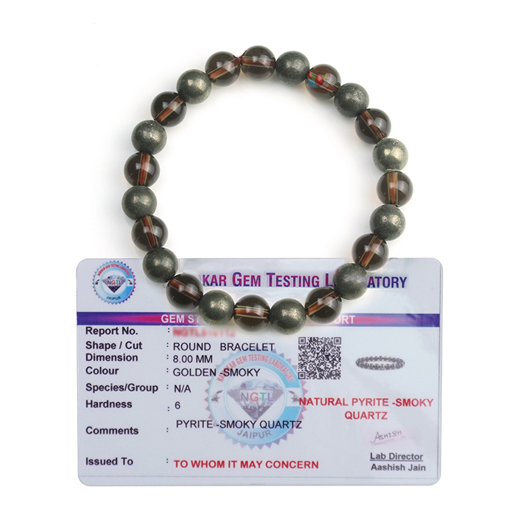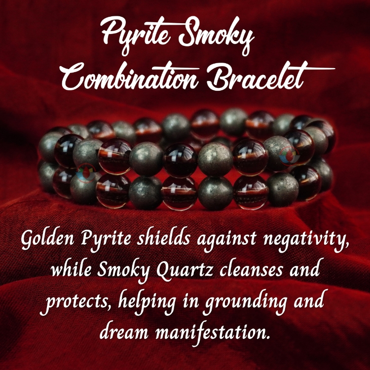 - Pyrite Smoky Quartz crystal Combination With the intension to give benefits to working men and women, students we developed Pyrite and smoky quartz crystal bracelet for their mental peace