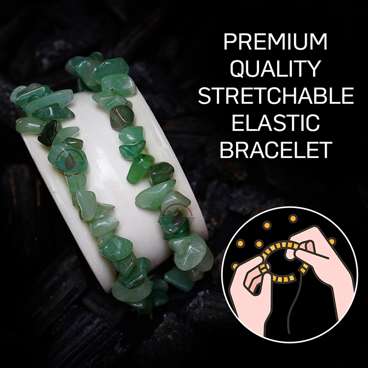 - Activated Green Aventurine Chips Bracelet It enhances one’s creativity and motivation; and encourages perseverance in maneuvering. life’s obstacles.