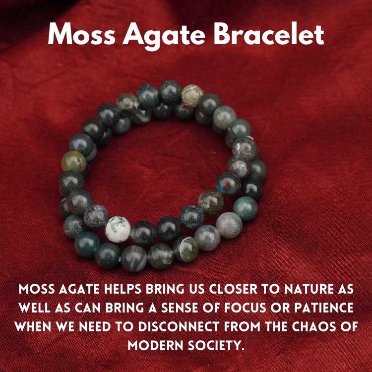 - Moss Agate helps bring us closer to nature as well as can bring a sense of focus or patience when we need to disconnect from the chaos of modern society.