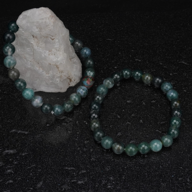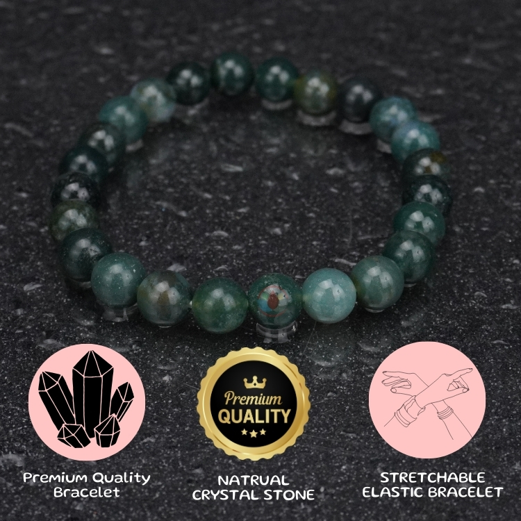- Moss Agate Bracelet with Certificate For Reiki, Balance Chakra, Positive Energy, and Healing. Moss Agate Stone Bracelet 8mm. 8mm Gemstones Round Beads Stretchable Bracelet for Men and Women.