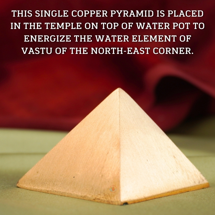 - This single copper pyramid is place in the temple on top of water pot to energize the water element of vastu of the north-east corner.