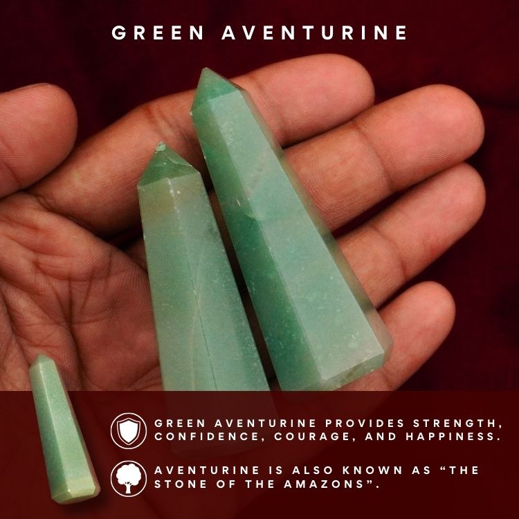 - Green Aventurine Pencil provides strength, confidence, courage, and happiness.
