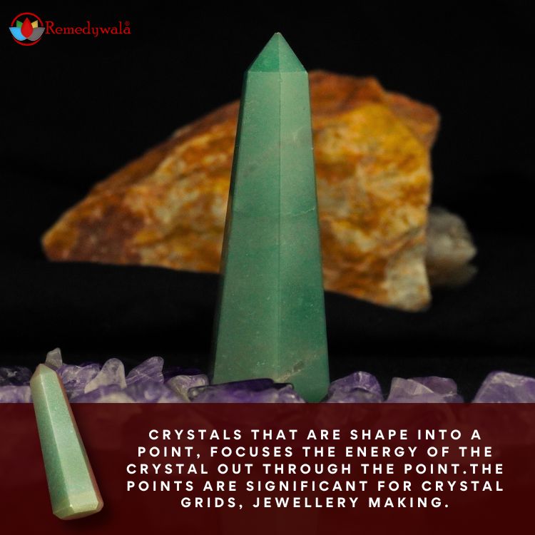 - Crystals that are shape into a point, focuses the energy of the crystal out through the point.