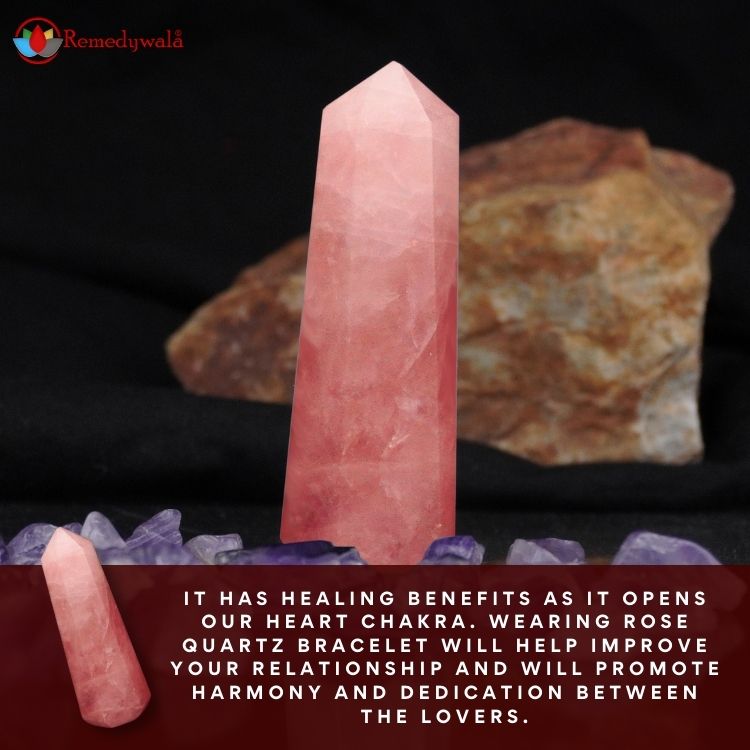 - It has healing benefits as it opens our Heart Chakra. Wearing Rose quartz bracelet will help improve your relationship and will promote harmony and dedication between the lovers.