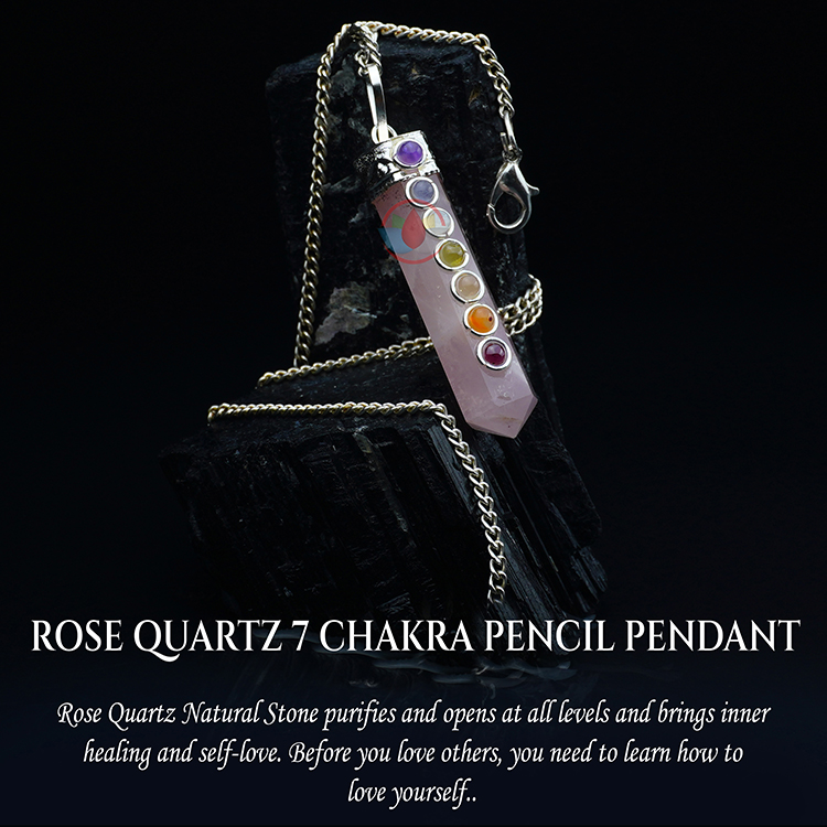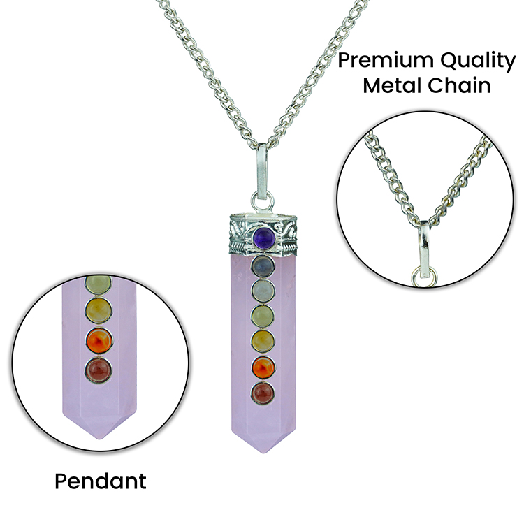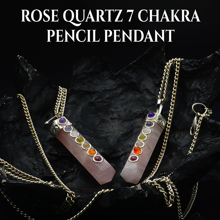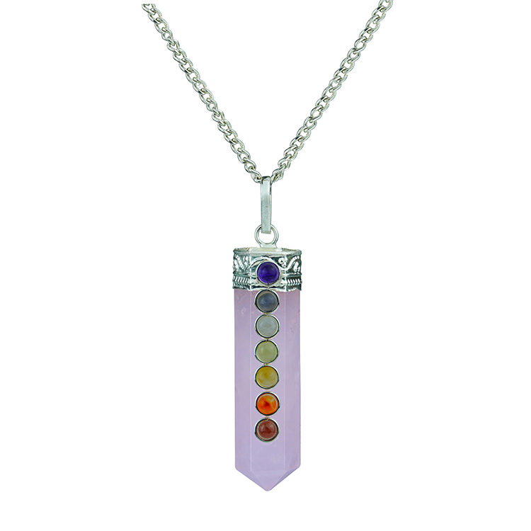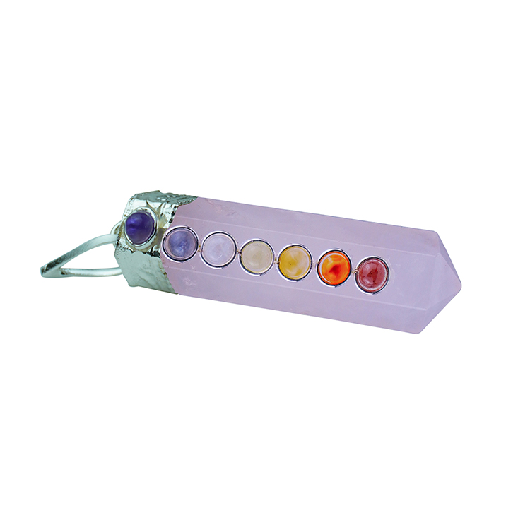 Rose Quartz Sphatik 7 Chakra Pencil Pendant
