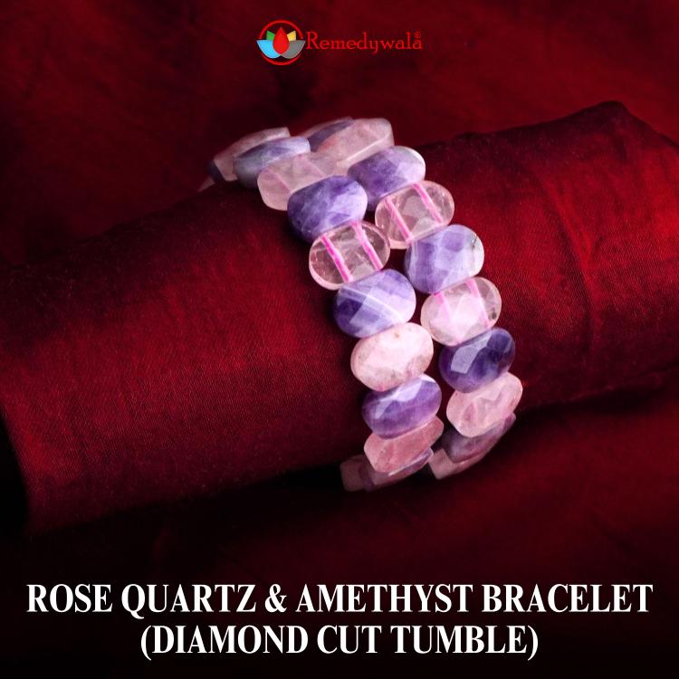 Rose Quartz Amethyst Bracelet (Diamond Cut Tumble) – Remedywala