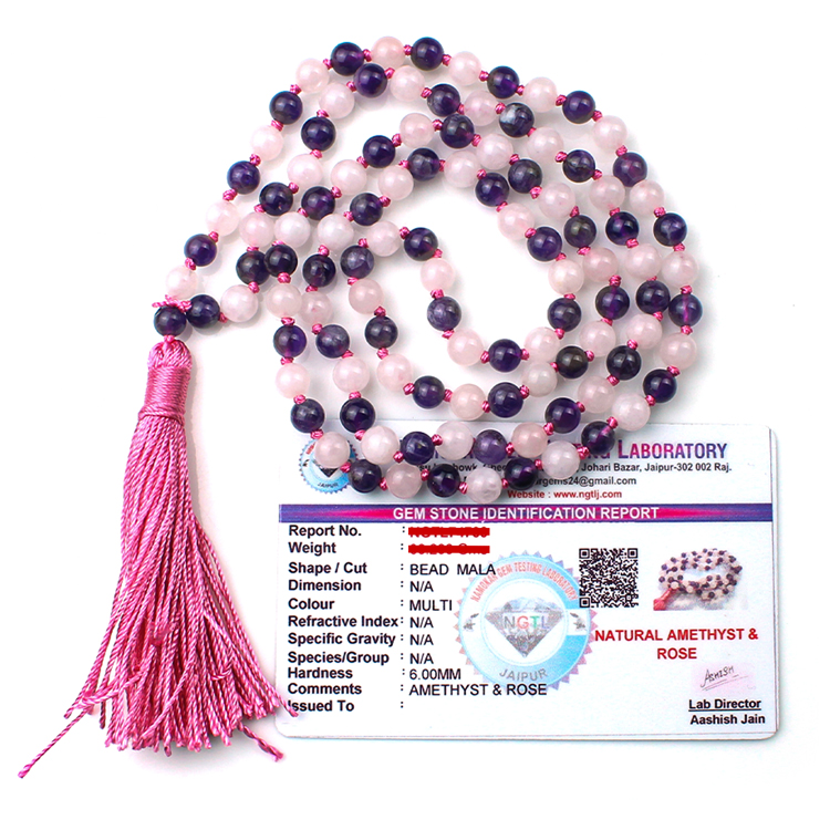 Rose Quartz Amethyst Mala With Certificate 6mm