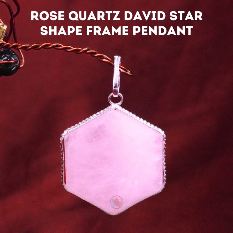 - Rose Quartz David Star Frame Pendant with Metal Chain. Reiki Healing and Crystal Healing Raw Stone Rose Quartz Pendant for Women and Men