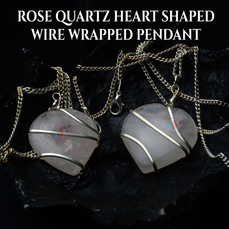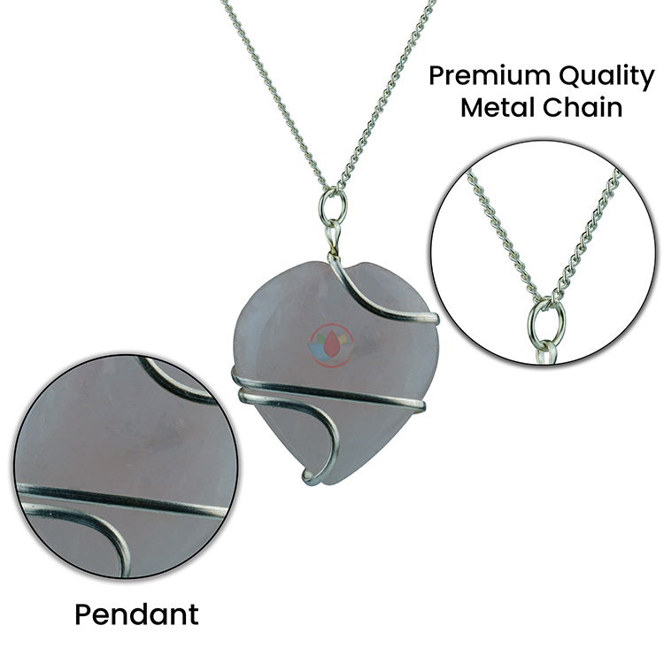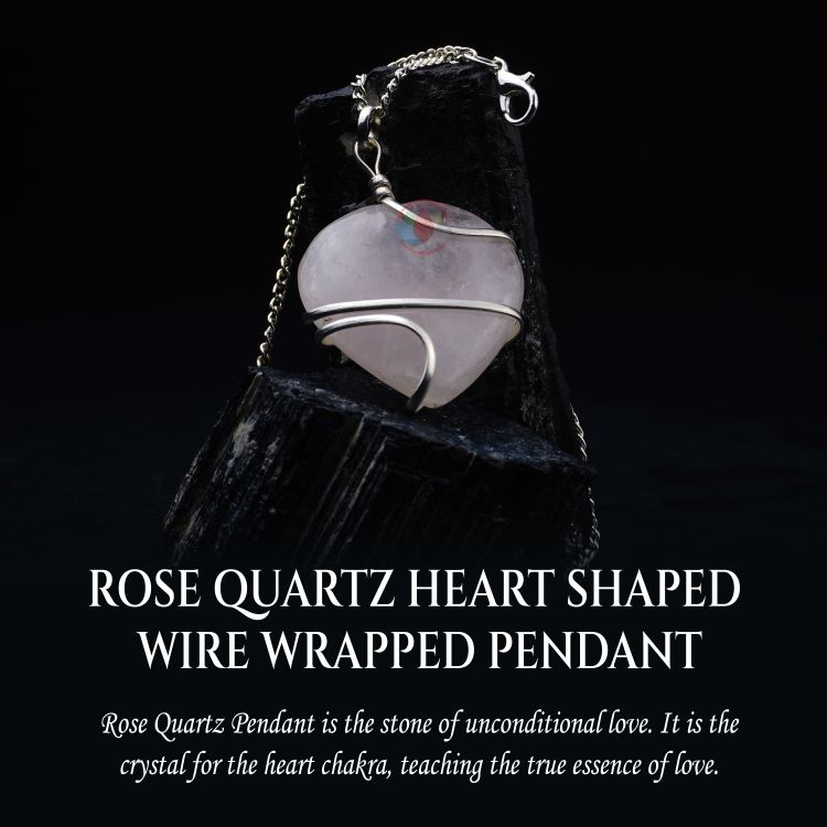 - Rose Quartz Pendant Heart Shape Wire Wrapped Pendant with High Quality Metal Chain. Reiki Healing and Crystal Healing Rose Quartz crystal pendant for women and men