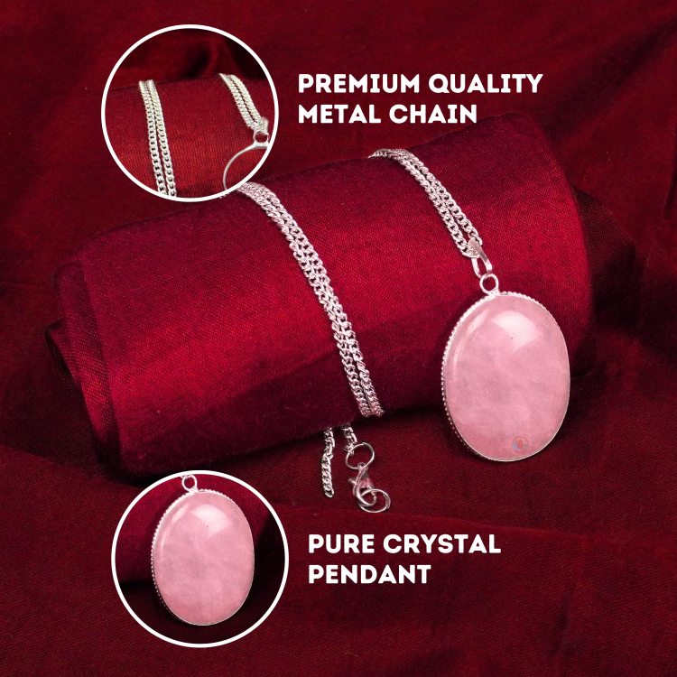 • Rose Quartz Oval Shape Frame Pendant with Metal Chain. Reiki Healing and Crystal Healing Oval Shape Frame Rose Quartz Pendant for Women and Men
