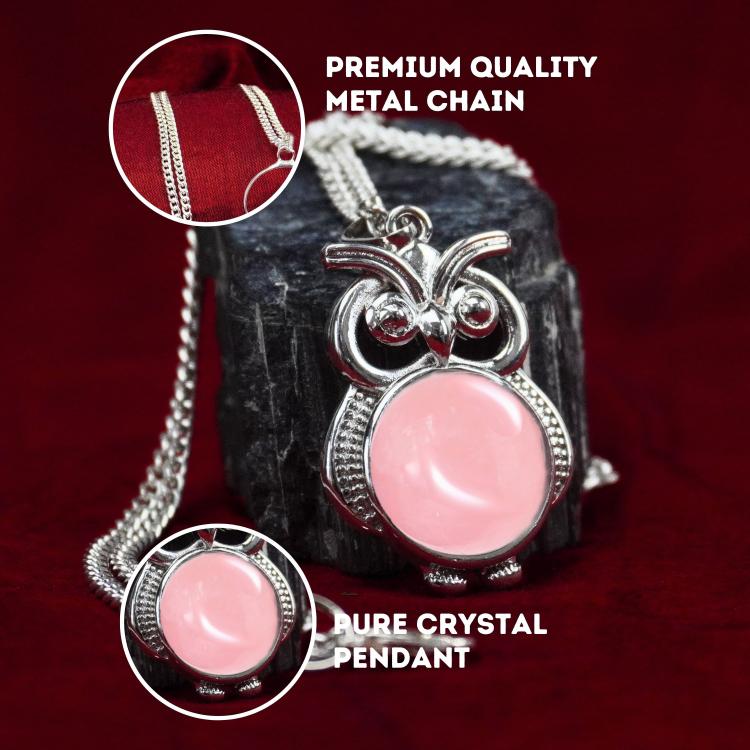 - Rose Quartz Owl Pendant with Metal Chain. Reiki Healing and Crystal Healing Owl Rose Quartz Pendant for Women and Men