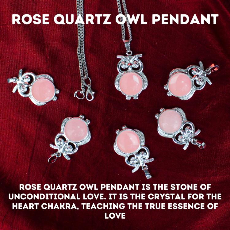 - Rose Quartz Owl Pendant is the stone of unconditional love. It is the crystal for the heart chakra, teaching the true essence of love.
