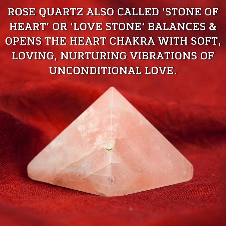 - Rose quartz also called ‘Stone of heart’ or ‘Love stone’ balances & opens the heart chakra with soft, loving, nurturing vibrations of unconditional love.