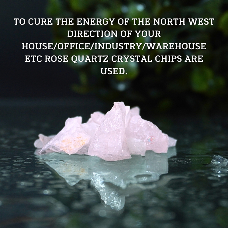 • To cure the Energy of the North West direction Rose Quartz crystal chips are used. Placing Rose Quartz in the North West corner of your home can help you balance in all matters of the heart.