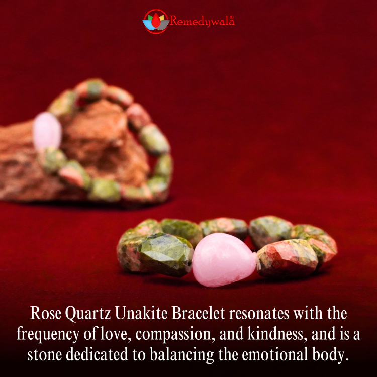 • Rose Quartz Unakite Bracelet resonates with the frequency of love, compassion, and kindness, and is a stone dedicated to balancing the emotional body.