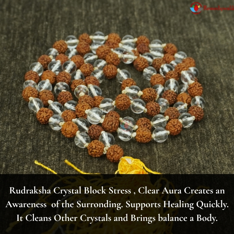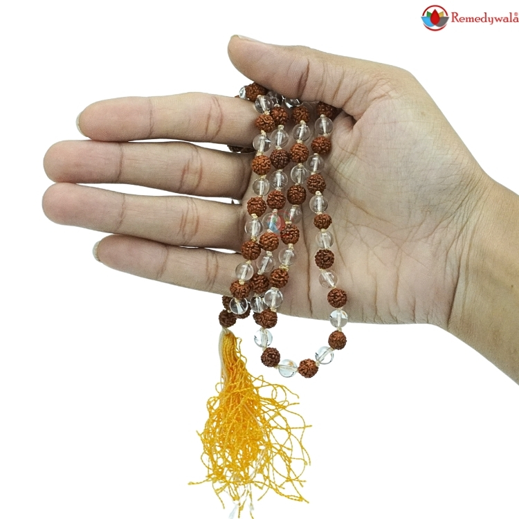 Rudraksha Clear Quartz Mala 6mm