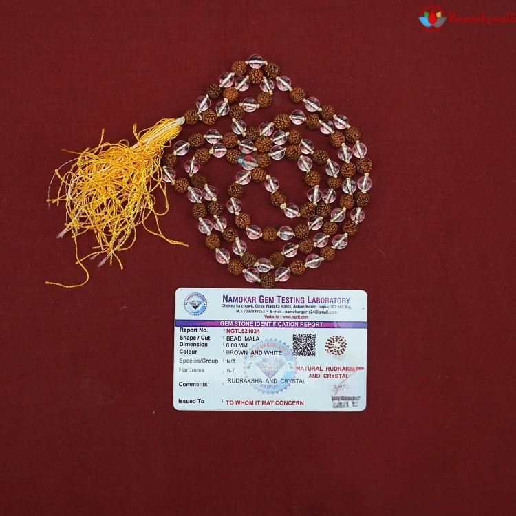 Rudraksha Crystal Japa Mala With Certificate 6mm Beads
