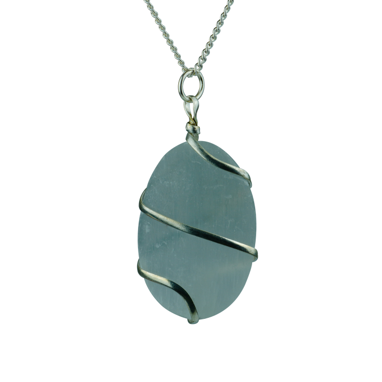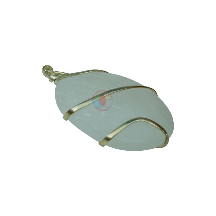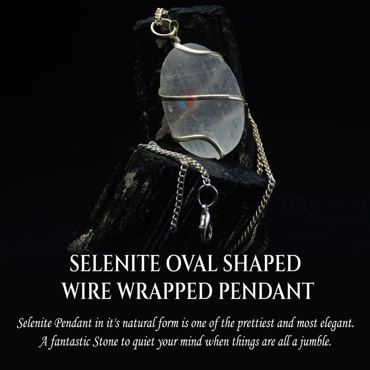 - Selenite Pendant Oval Shape Wire Wrapped Pendant with High Quality Metal Chain. Reiki Healing and Crystal Healing Selenite crystal pendant for women and men.
